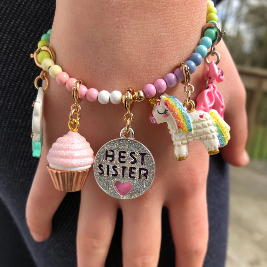 Charm It! Gold Bead Pink Heart Stretch Bracelet
