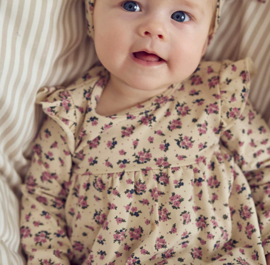 Baby Dress with Puff Sleeves - Zinnia Bloom