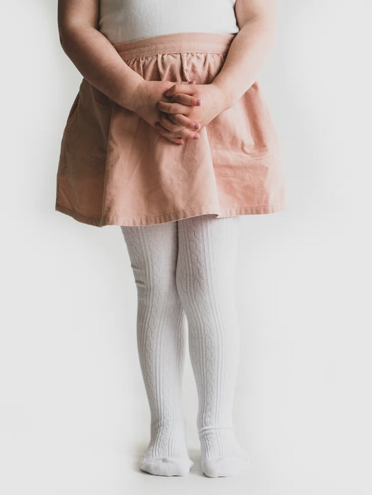 Girls Cable Knit Tights - Sugar Almond