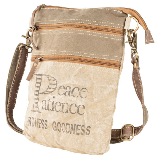 Canvas Peace Patience Double Zip Crossbody