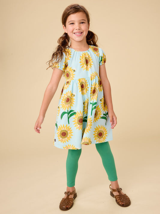 Girls Puff Sleeve Sunflower Dress
