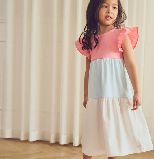 Girls Organic Flutter Dress - Summer Garden