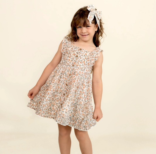Girls Organic Button Flutter Dress - Bohemia