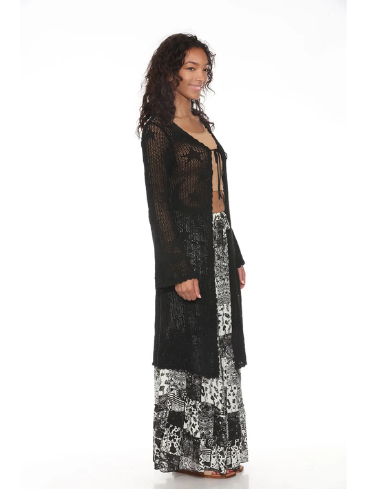 Mixed Patch Kimono Shrug with Draped Asymmetric Hem