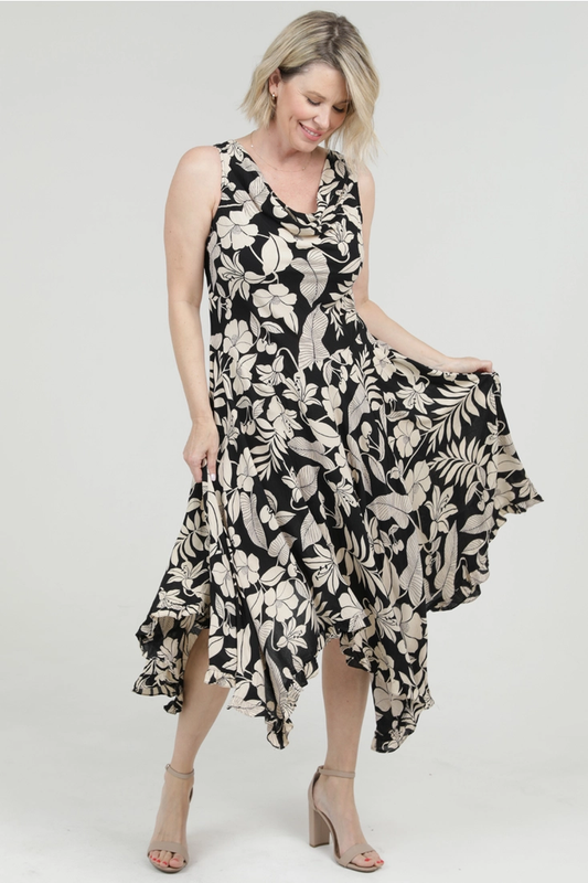 Leaf Print Hanky Hem Dress