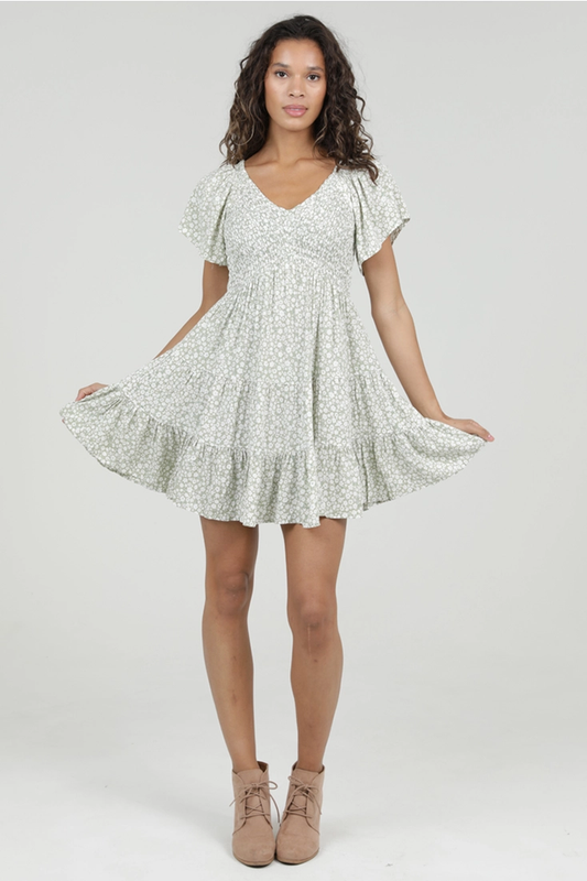 V-Neck Smocked Dress