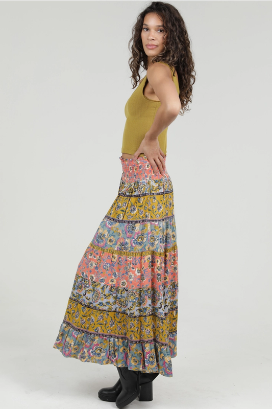 Mixed Print Tiered Maxi Skirt