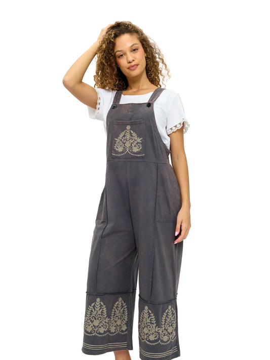 Embroidered Details Midi Overalls