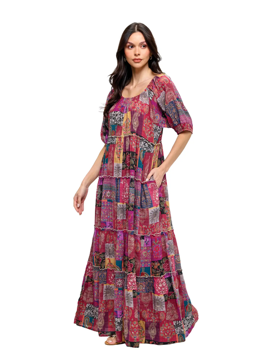 Gypsy Floral Patchwork Maxi Dress