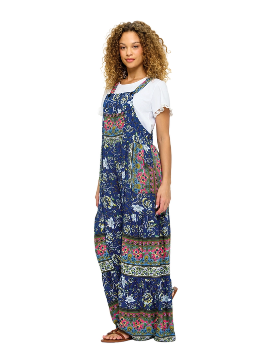 Hippie Print Patch Overall Dress