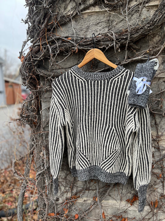 Knitted Cream + Black Sweater Top