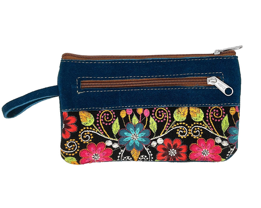 Embroidered Floral Suede Wristlet