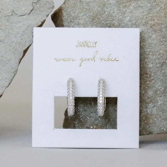 Silver Hoop Pave White CZ Earrings