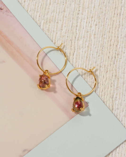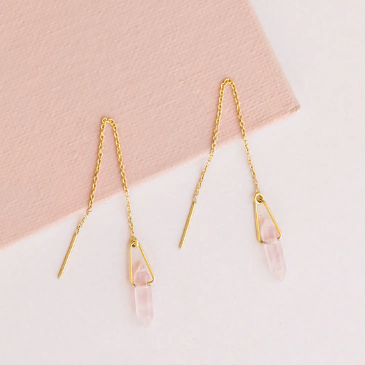 Stone Dream Catcher Earrings Rose Quartz Gold