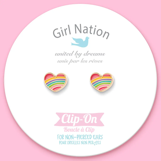 Rainbow Heart Clip On Earrings