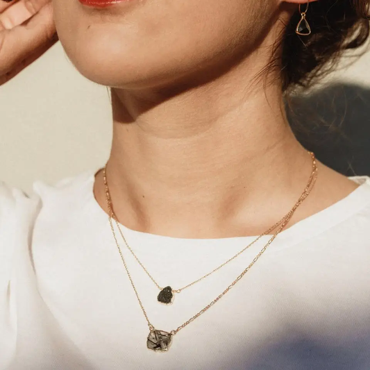 Power of 2 Necklace Tourmalinated Quartz & Druzy Quartz