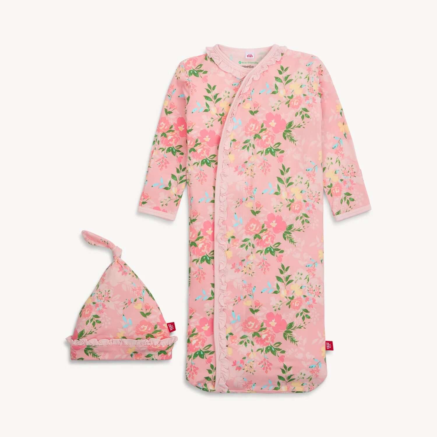 Our modal Gown & Hat Set is a newborn, late-night must-have. Magnets take diaper changes to a new level of fuss-free efficiency, while a closed bottom keeps toes and feet warm and cozy—which is mission critical during your third middle-of-the-night change. Other amazing features include the silkiest, softest modal fabric and built-in mitten cuffs.
