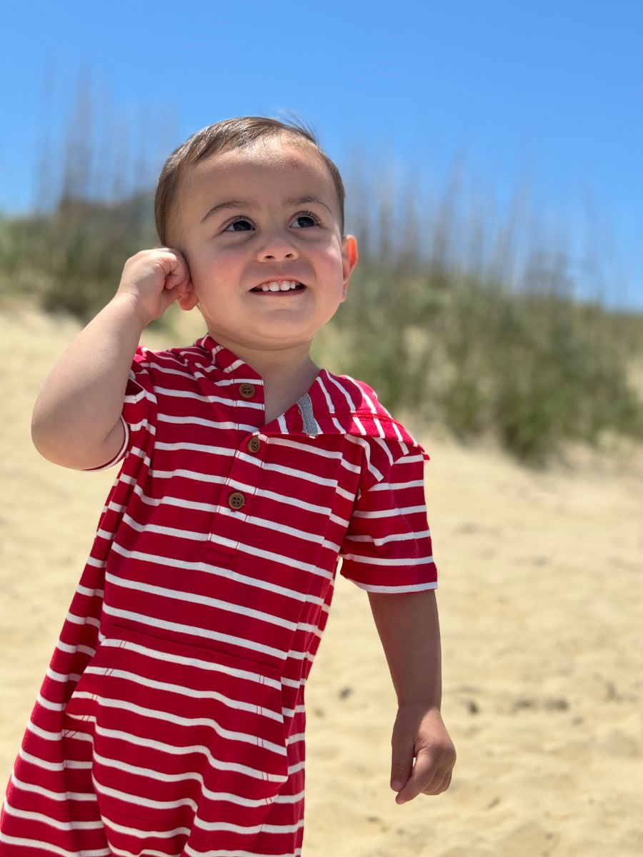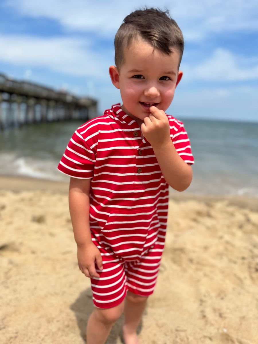 Add a pop of colour and fun to your child's wardrobe with this red and white striped hooded romper! This romper is perfect for both playdates and cosy days at home. The built-in hood adds extra warmth and style, making it an ideal choice for cooler days or breezy evenings. Crafted from soft, breathable fabric, it ensures your little one stays comfortable all day long. With easy snap or button closures, getting dressed is a breeze. Whether it’s an adventure in the park or a casual day indoors, this romper is the perfect blend of style and comfort.