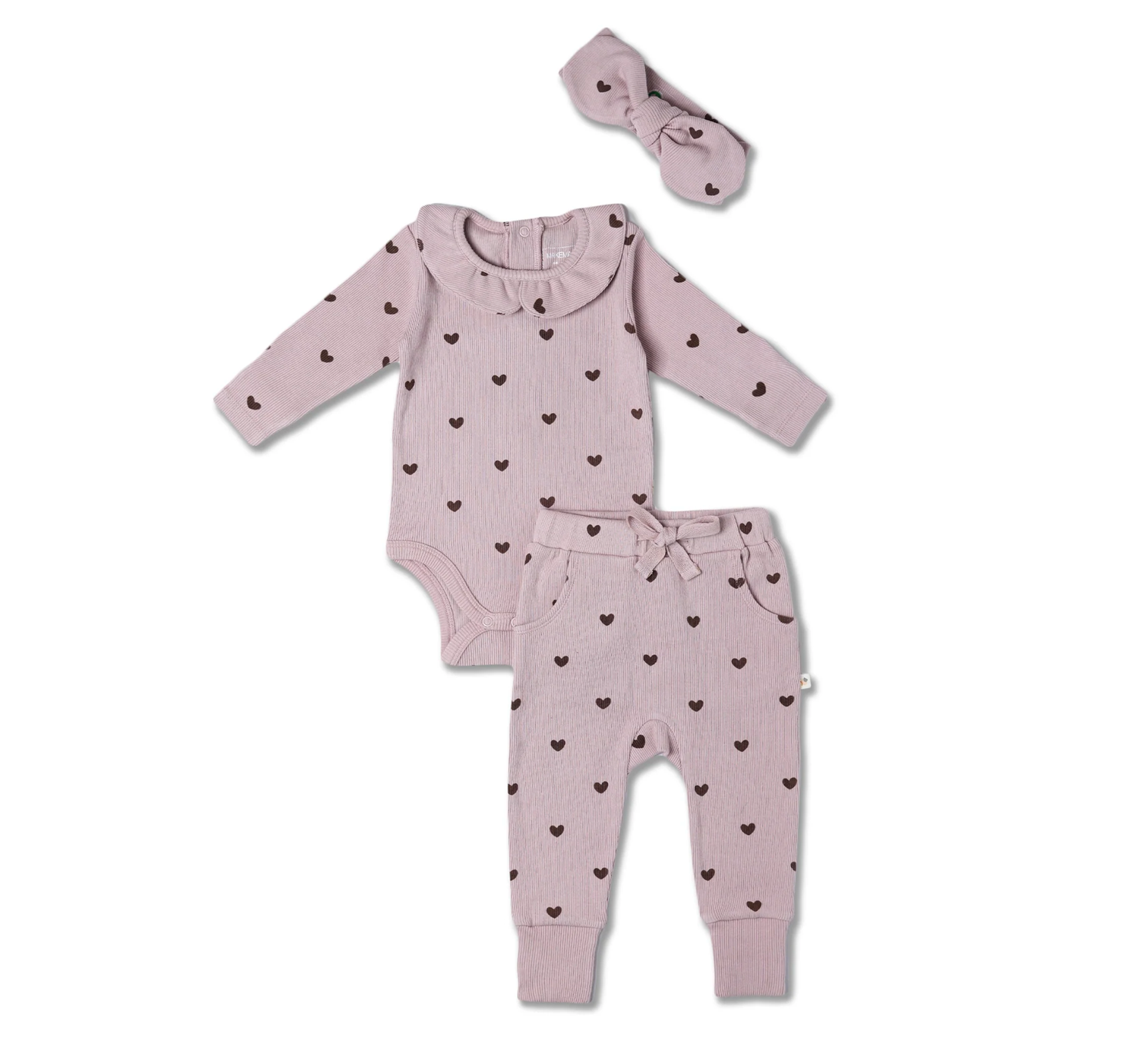Add a touch of sweetness to your baby girl's look with our heart onesie.