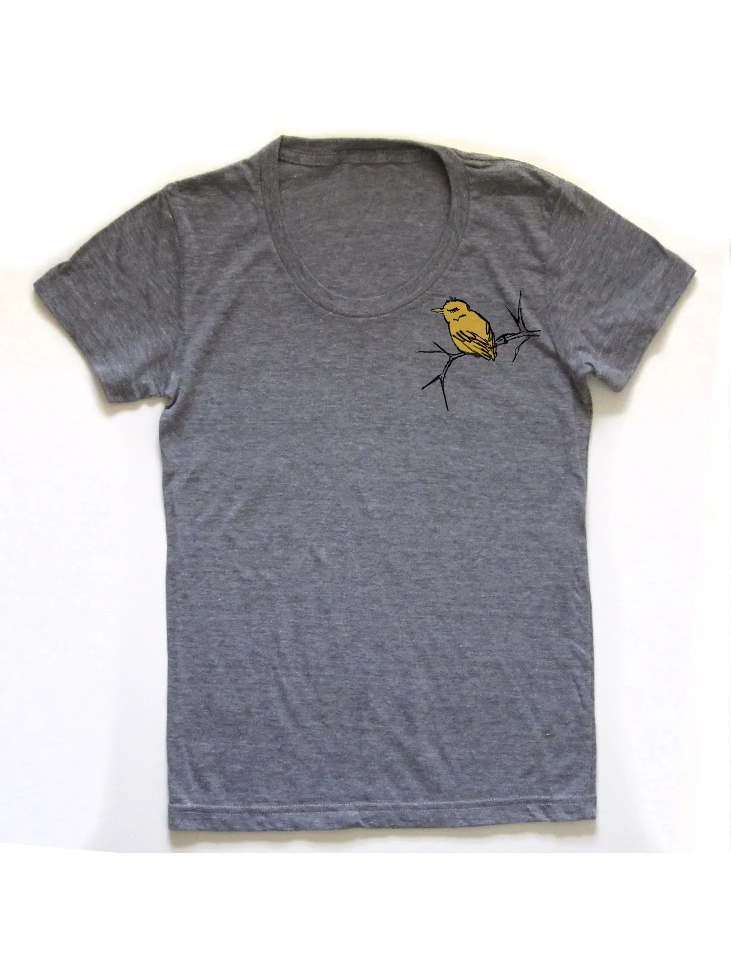 A cute little sparrow, sitting on a branch; hand-drawn with love and screen printed by hand.