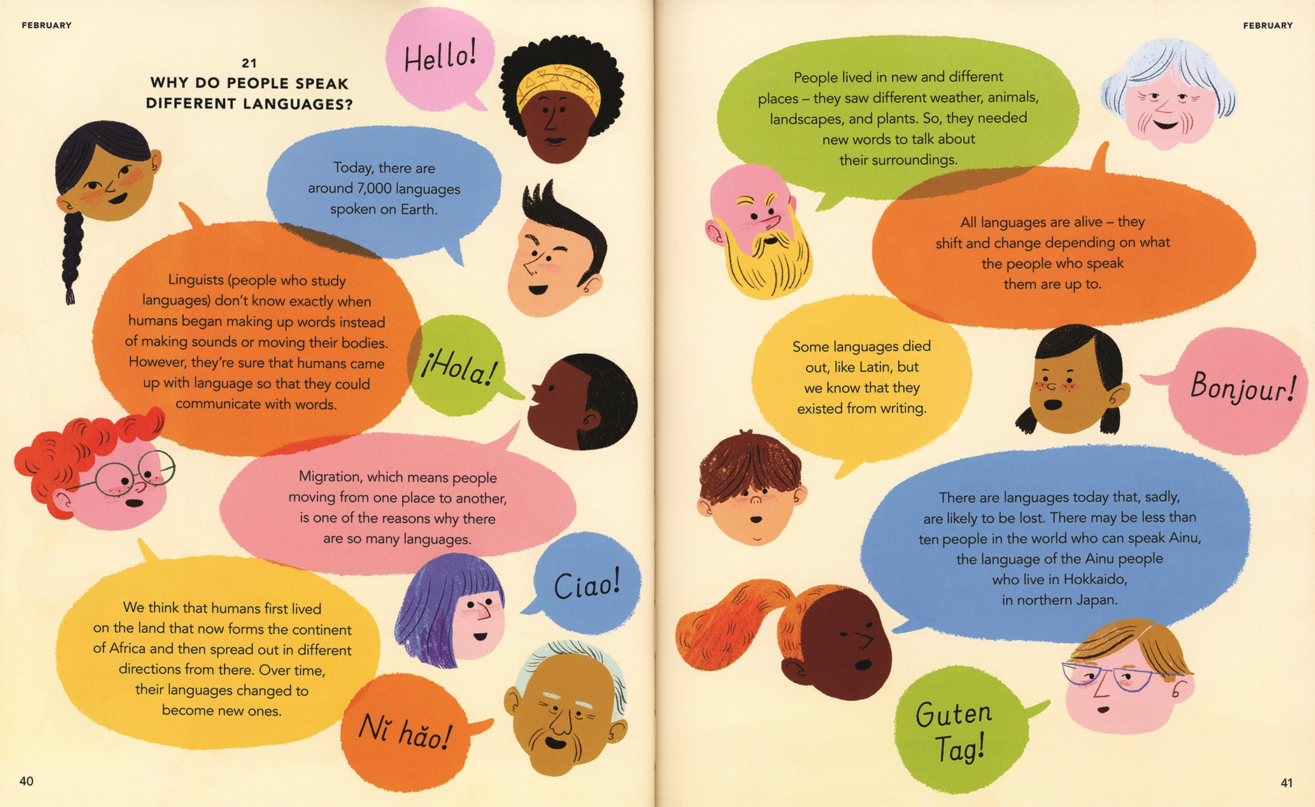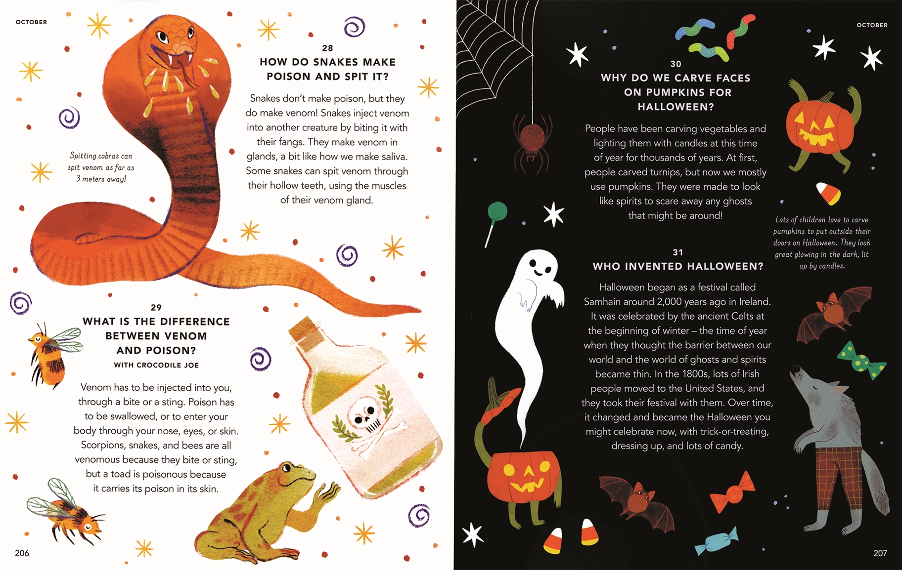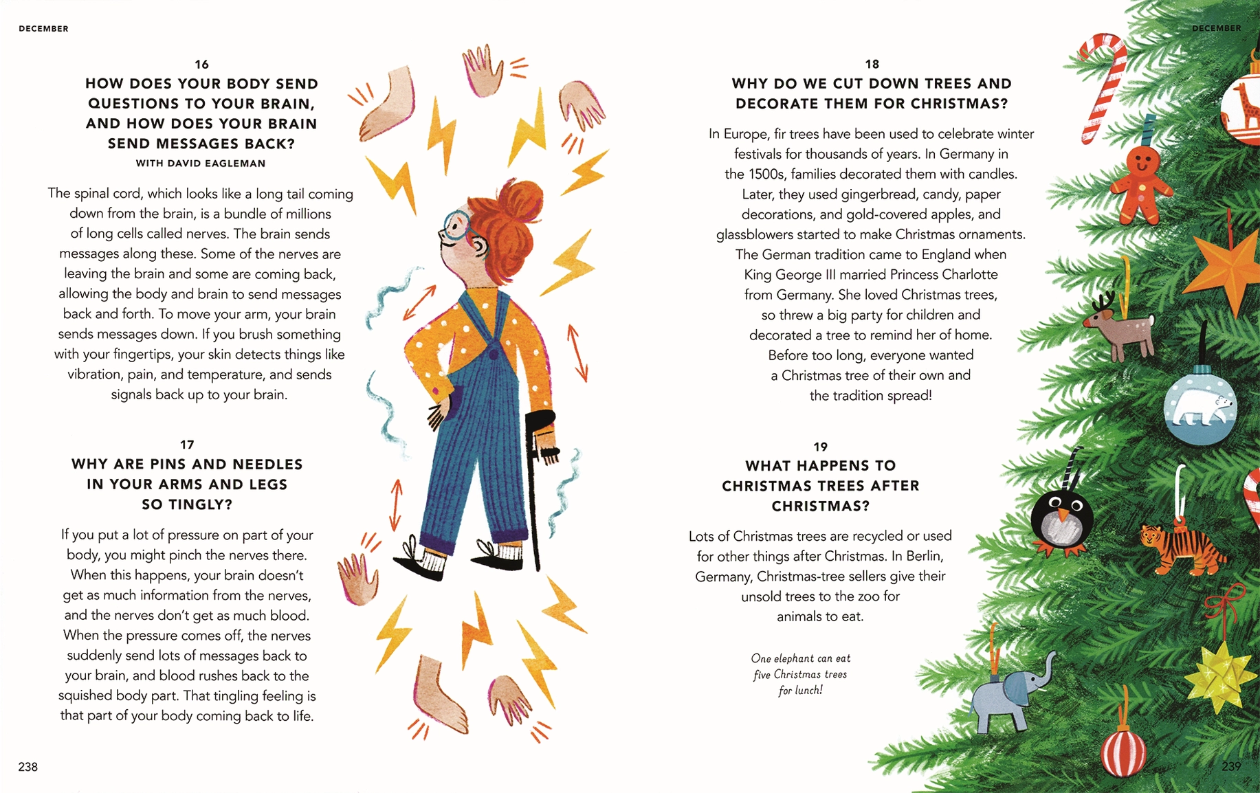 This amazing compendium of information grew out of UK author Molly Oldfield’s podcast answering questions from curious children around the world. Here are 366 such questions, along with answers from experts in every imaginable field – one for every day of the year plus an extra one for leap years – with illustrations by a dozen different artists.