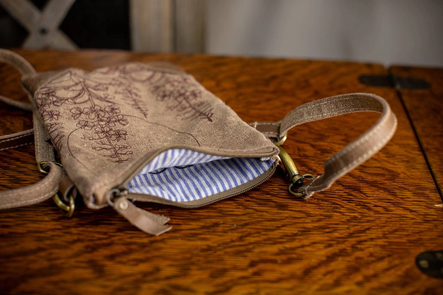 The Fireweed Recycled Small Canvas Sling is the perfect compact companion for carrying your essentials while staying true to sustainable fashion. Made from durable recycled canvas, accented with genuine leather and brass hardware, this sling bag is both stylish and functional.
