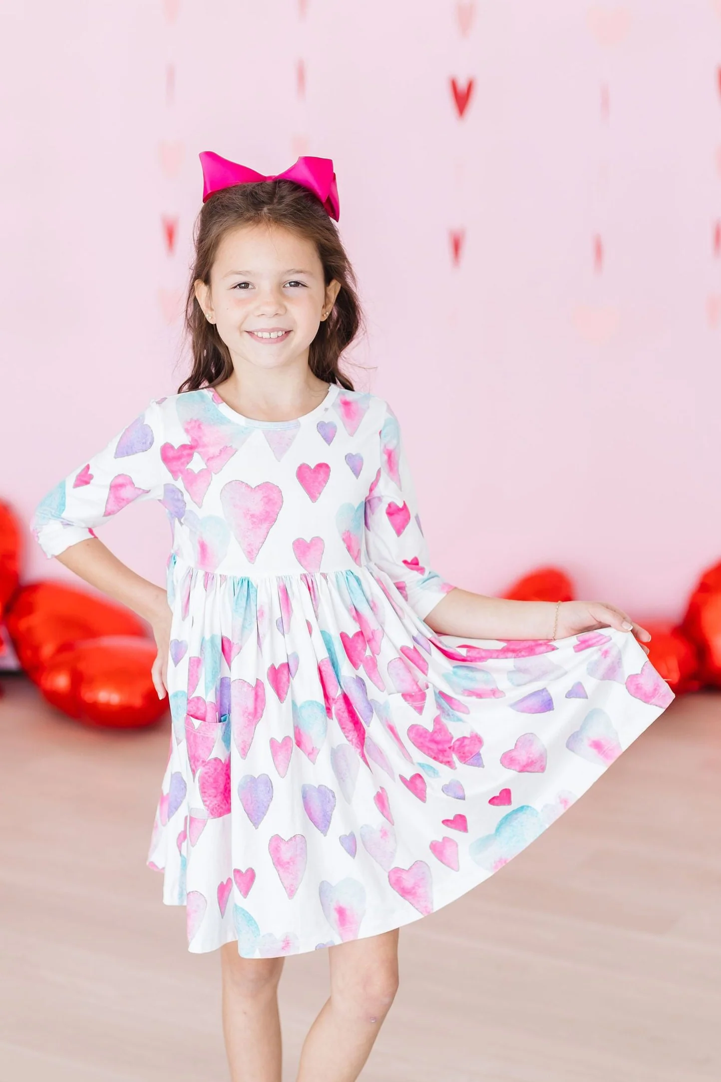 The perfect dress for school, special occasions, and everyday play! Designed by a mom and a dad. Mom wanted something twirly, comfortable and easy to wash. Dad wanted something easy to get on his chubby, big headed toddler. Designed with a scoop back for quick on and off, and higher neckline for modesty.