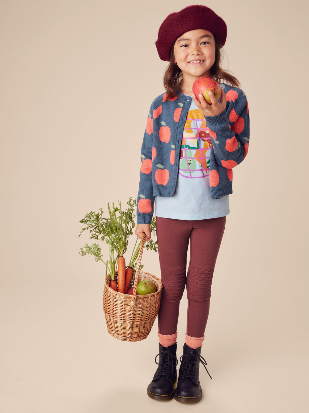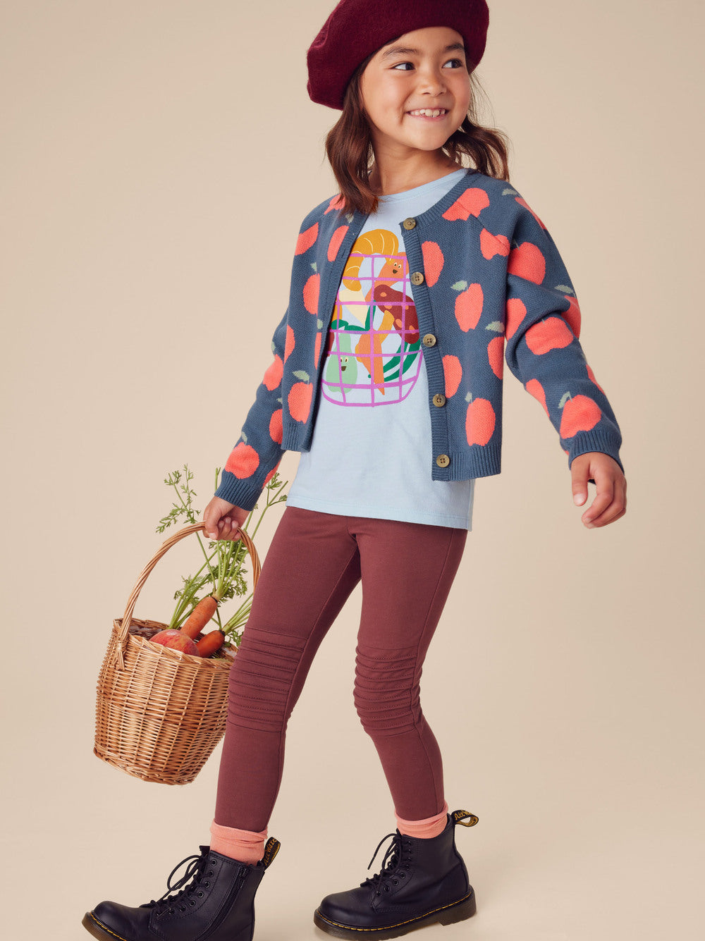 So on trend! Moto-distressed lined knees offer extra durability and style to our fan-favorite leggings. Extra cozy and stretchy, our leggings hold up to all kinds of play, and keep their color and styling wash after wash. Easy wear elastic waistband. Ankle length. Cotton/spandex blend.