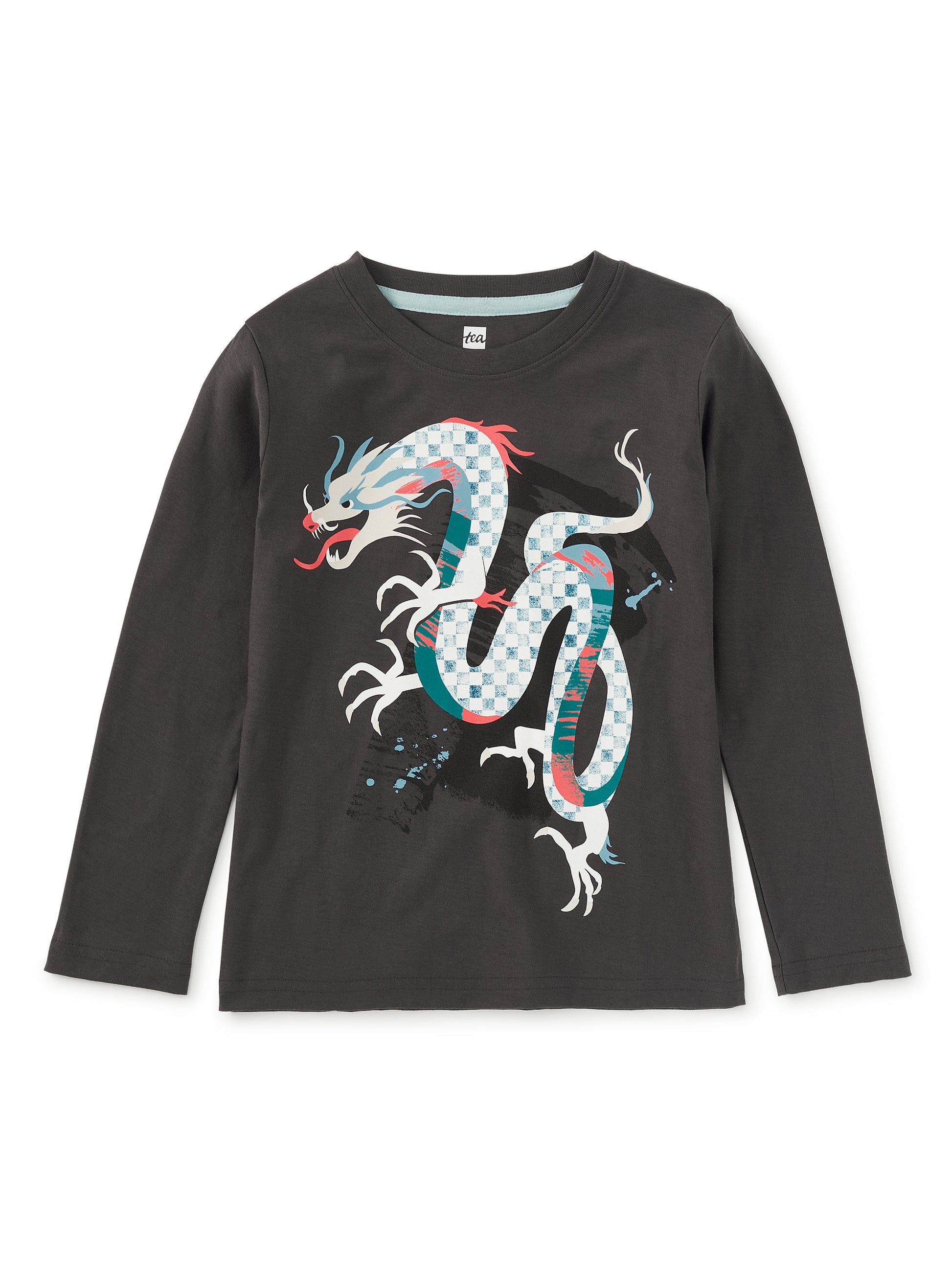 Unleash legendary style with this powerful long sleeve tee, featuring a dynamic dragon graphic inspired by East Asian mythology and bold streetwear vibes. The dragon's stylized checkerboard scales and electric color palette give it an eye-catching, modern twist. Made from 100% soft cotton jersey for all-day comfort and serious cool factor. A fierce, fashion-forward layer for school days, weekend play, or wherever the adventure leads.