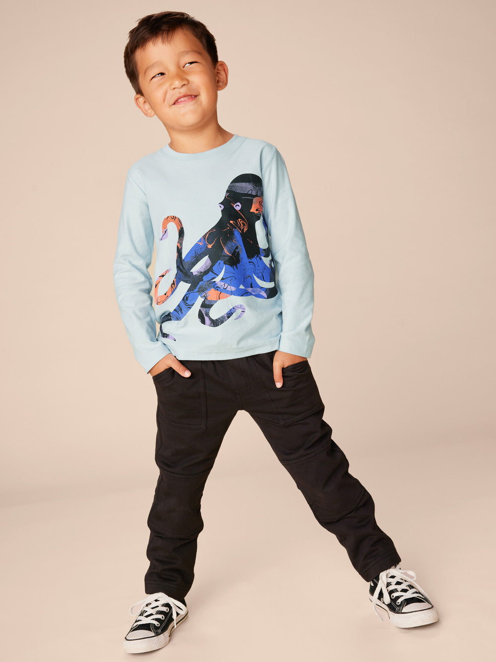 From our Turkish collection, our designers were inspired by the country's magnificent coastal waters, where the clever octopus resides. (Fun fact: The octopus can navigate mazes, solve problems, and use tools.) Our long sleeve tee is just right for fall and beyond. Made of 100% soft cotton that holds color and shape, season after season. Pair with Tea joggers or Playwear Pants to complete the look.
