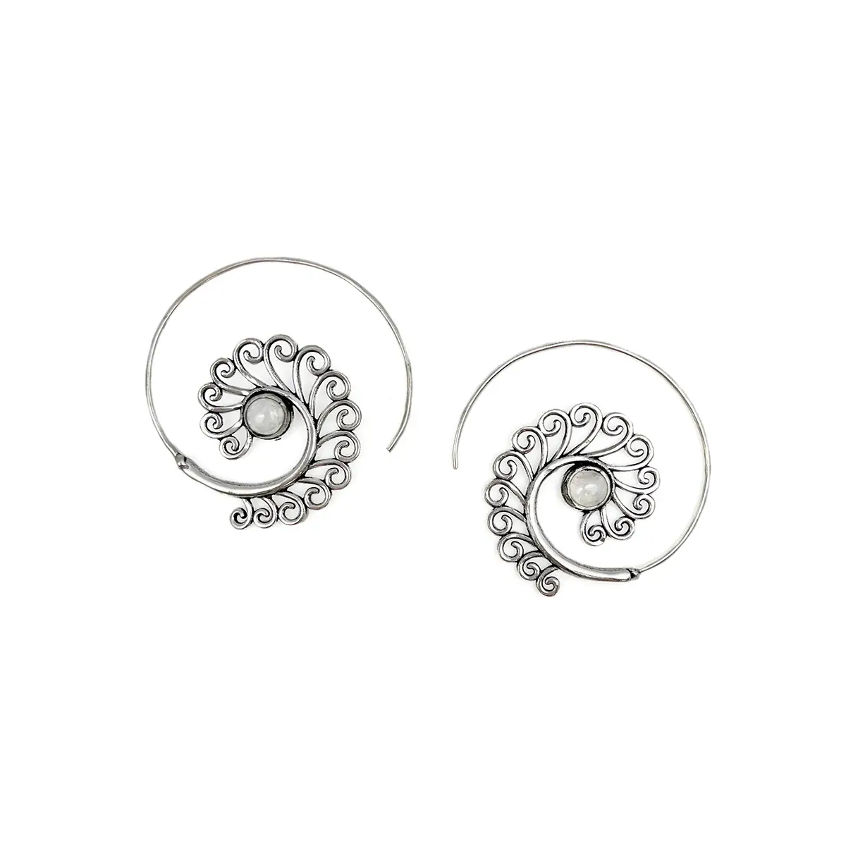 Tanvi Open Hoop Curl Earrings - Moonstone