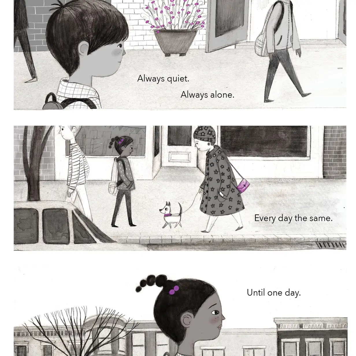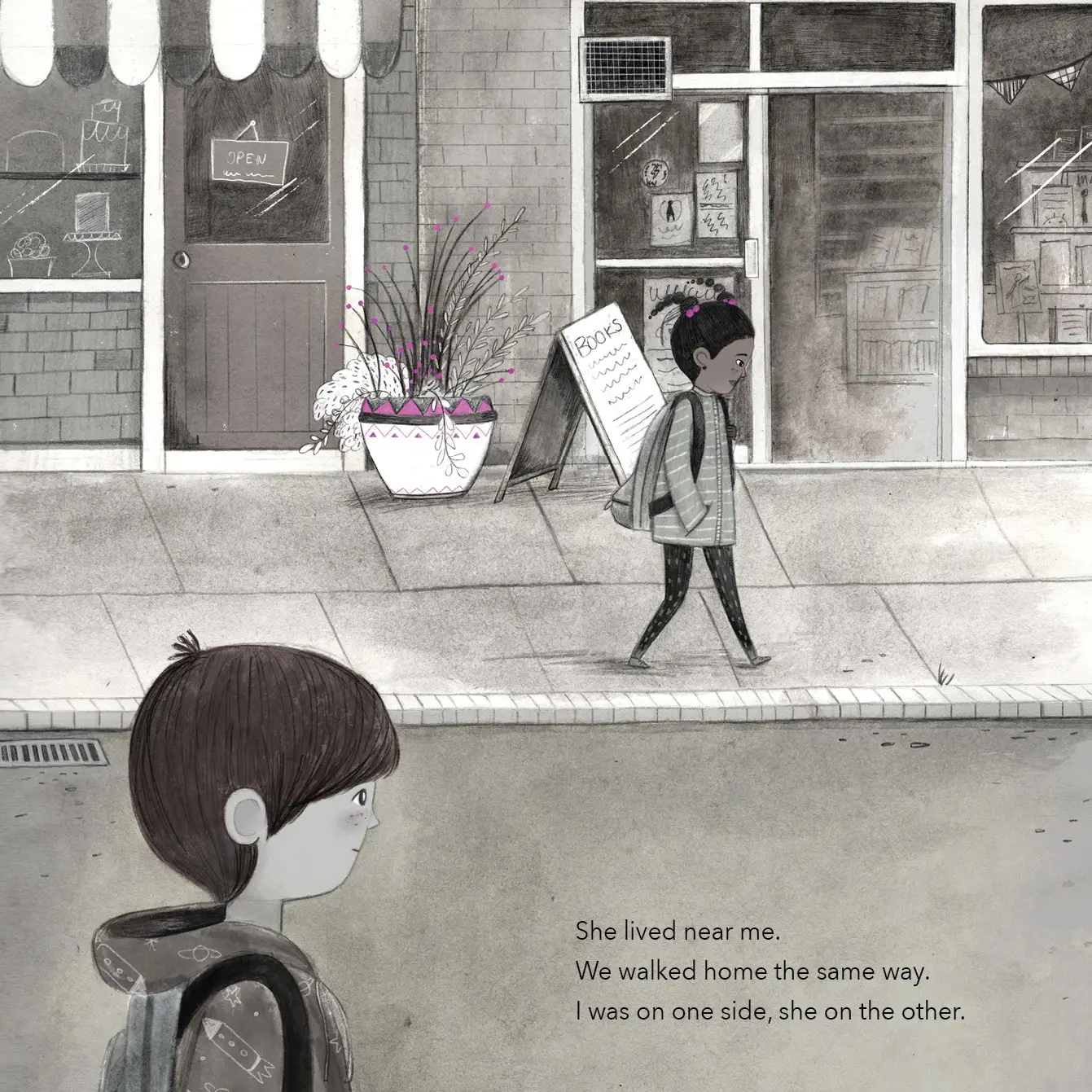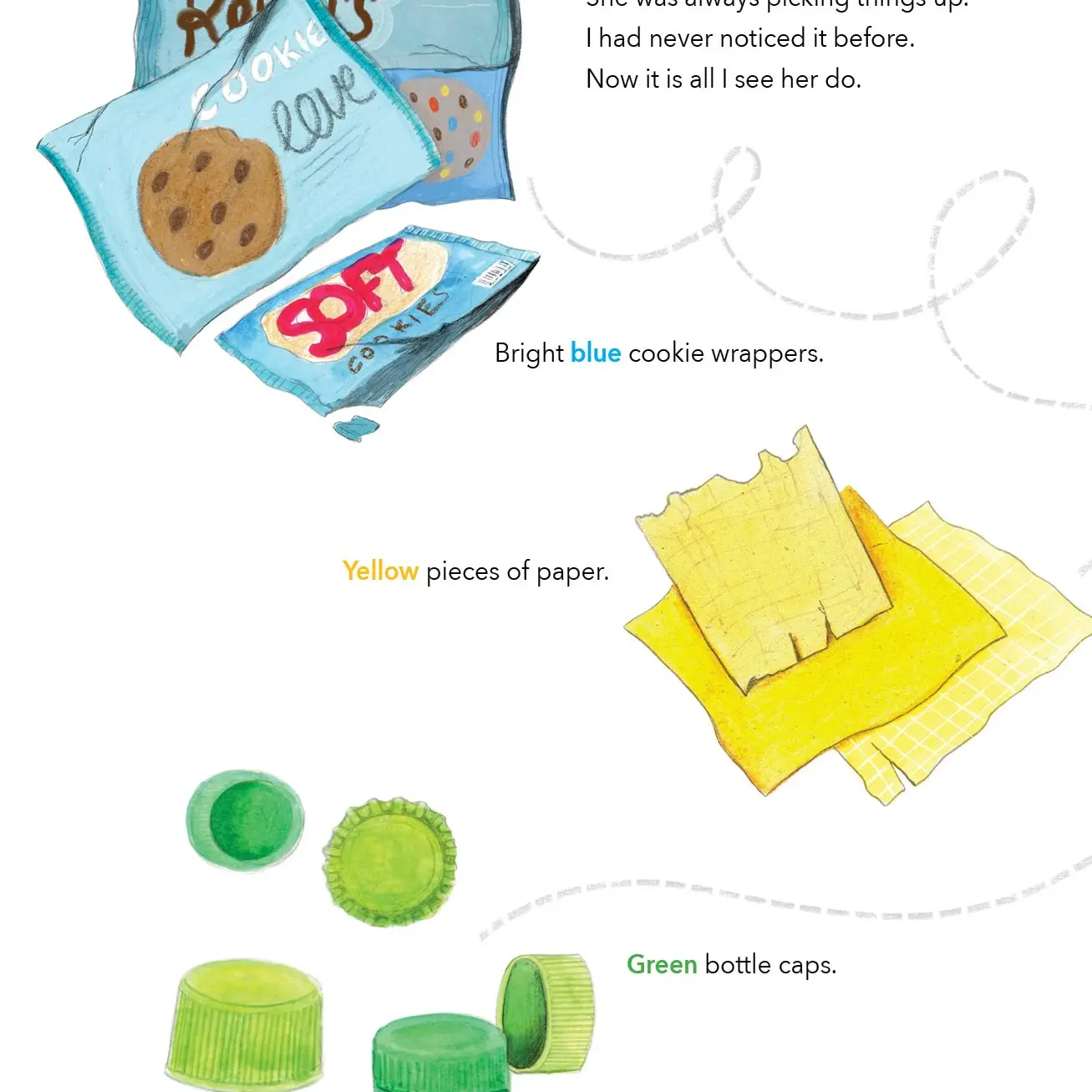 The color collector is a touching story about newness, friendship, and common ground. When a boy notices the new girl picking up all manner of debris and litter on their walks home from school he wants to know why. So she shows him the huge mural she's created in her room that reminds her of the home she left behind. He learns all about where she's come from and they both find how wonderful it is to make a new friend. Beginning with primarily black and white art, the color in the pages increase as our collector gathers her colors! Hardcover