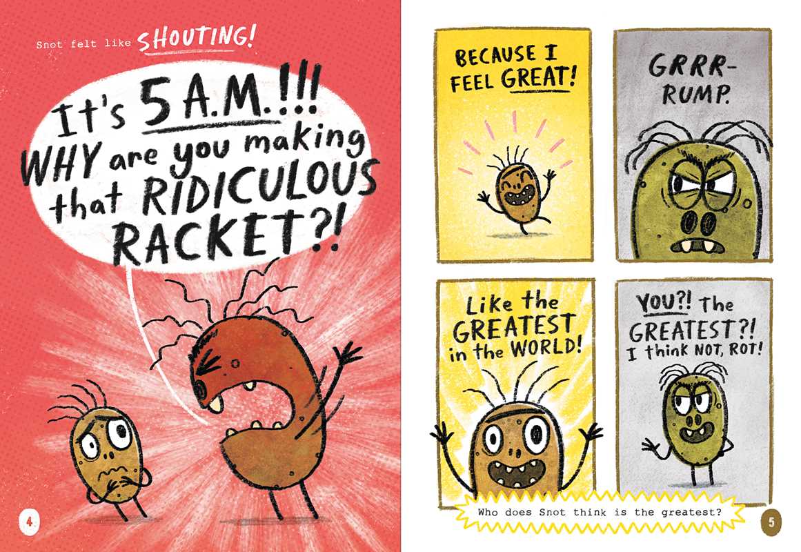 Rot is a mutant potato who wakes up feeling great, maybe even…the greatest in the world! But that only makes Rot’s brother Snot the grumpiest in the world. The only solution? An epic contest to prove who is the greatest once and for all, judged by the only impartial party they can find—their small fry little sister, Tot.