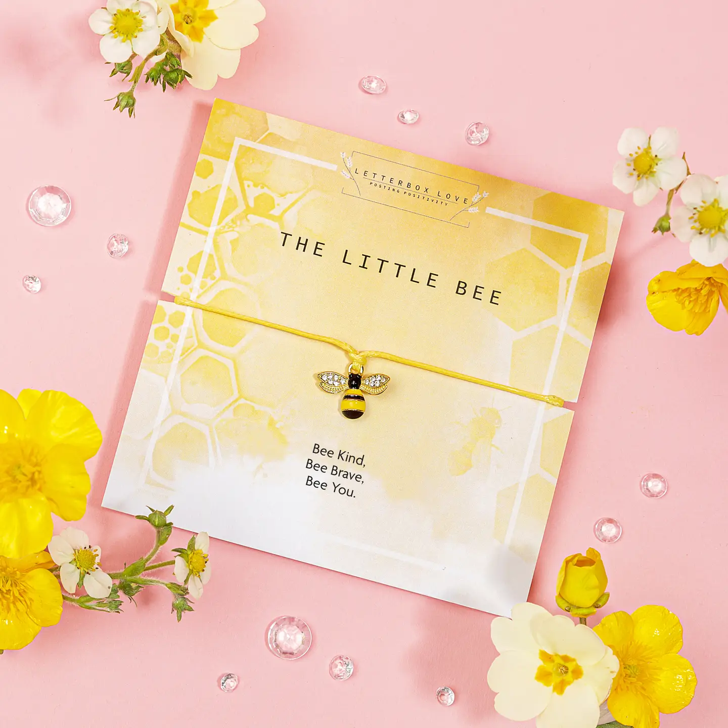 A sweet and meaningful gift to inspire positivity and self-belief. The Little Bee bracelet features a sparkling bee charm on a soft adjustable thread, mounted on a premium card with the uplifting message: Bee Kind. Bee Brave. Bee You.