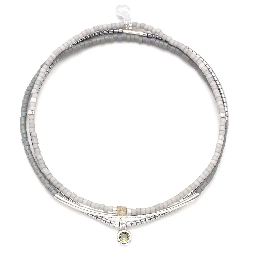 A new take on our favorite Miyuki Trio. Tonal colors are made playful mixed with texture and a tiny rhinestone charm.