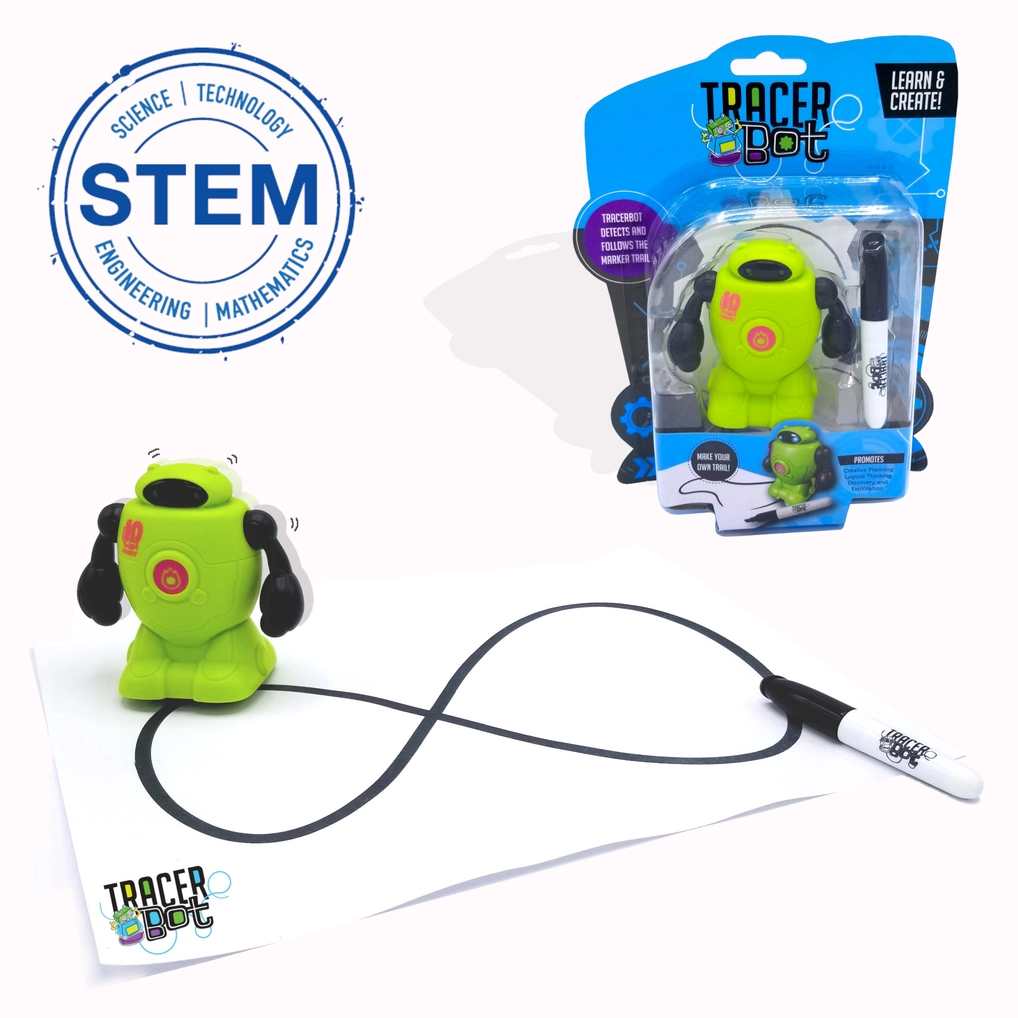 Includes a robot, a washable marker, a piece of starter paper & test trail paper