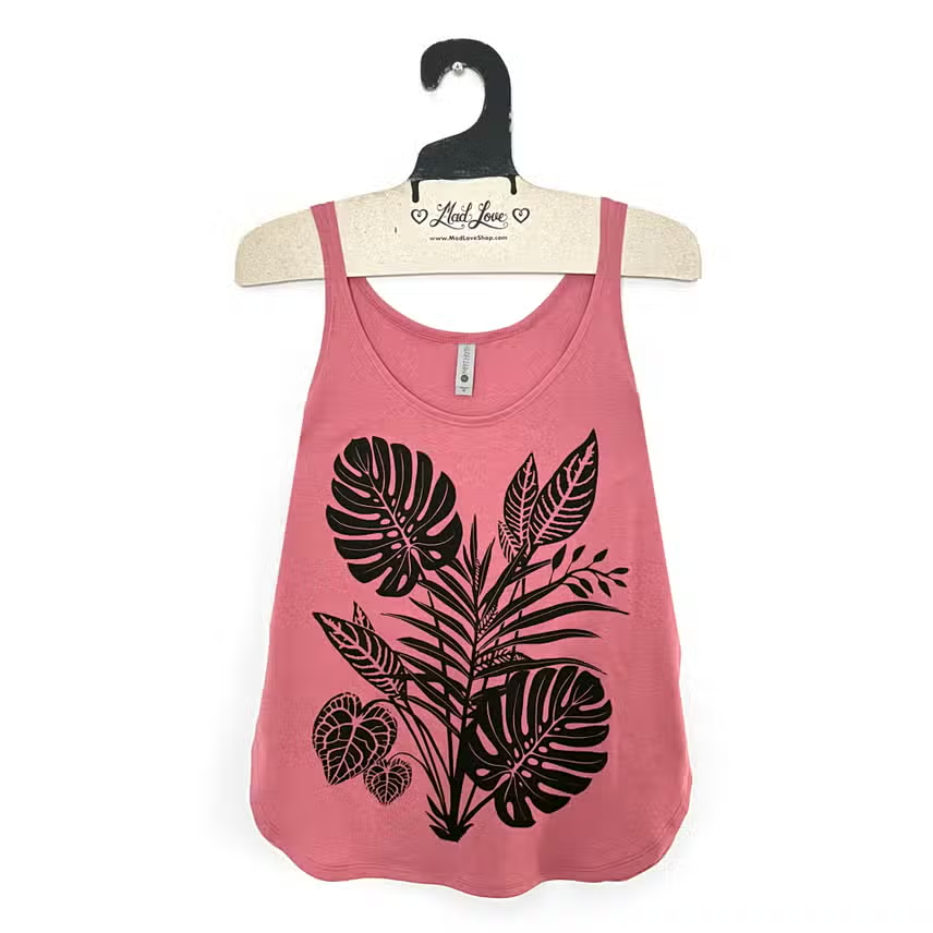 Ladies' Scoop side slit tank with Tropical Plants Screen Print