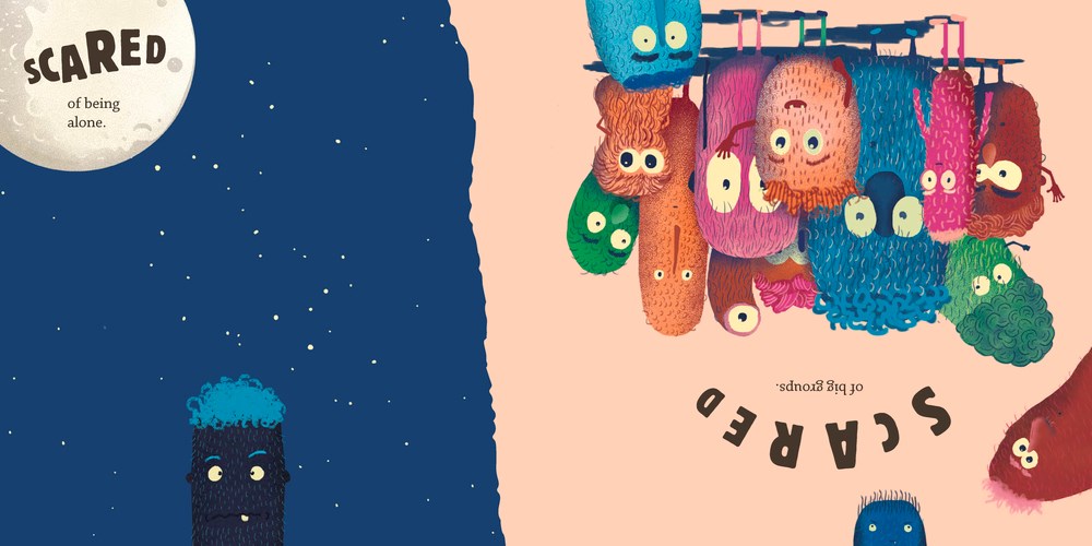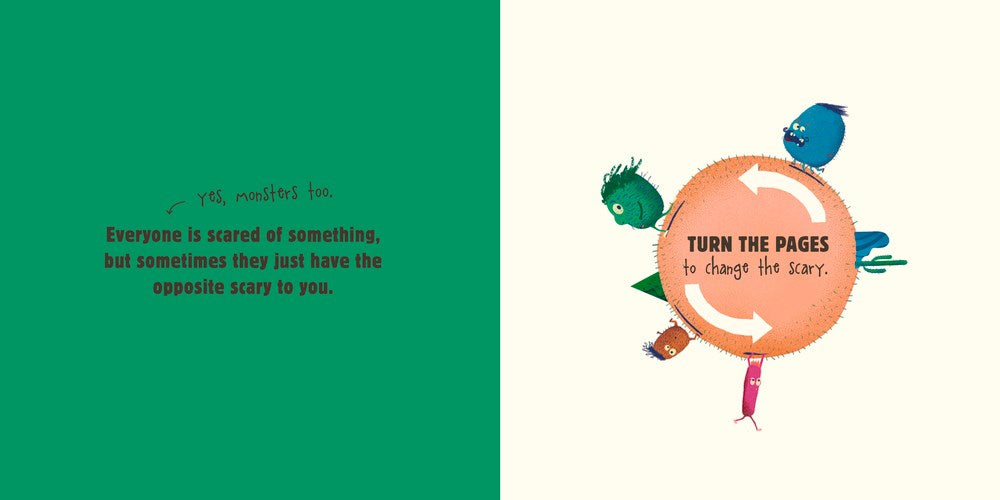 Everyone's scared of something, and someone may have the opposite scary from you! Can you turn your scary upside down? An interactive and clever book about facing your fears by debut author and illustrator Andy Hardiman.