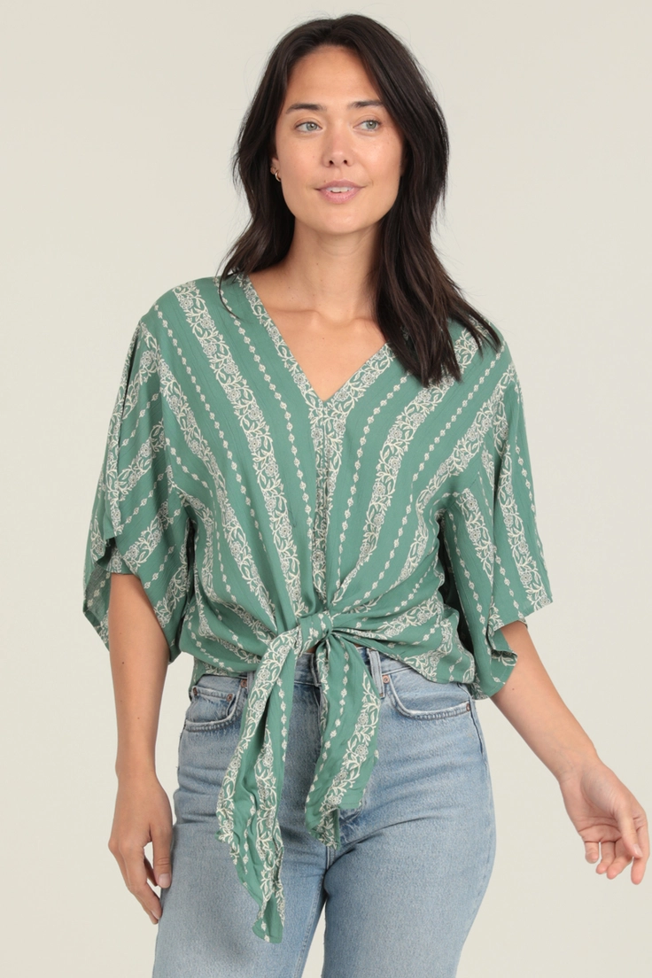 Our V Neck Kimono Sleeve Tie Waist Blouse is poetic, bohemian, and free. Inspired by the beauty and strength of women, this blouse is designed to be not only pretty and sophisticated, but also practical and versatile. The kimono sleeves and tie waist make it instantly wearable for any occasion. Embrace your eclectic and chic style with this uniquely styled blouse.