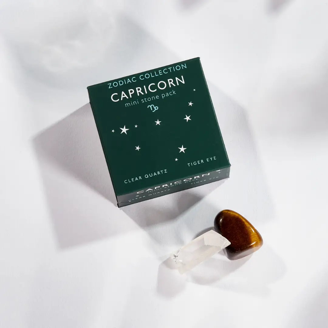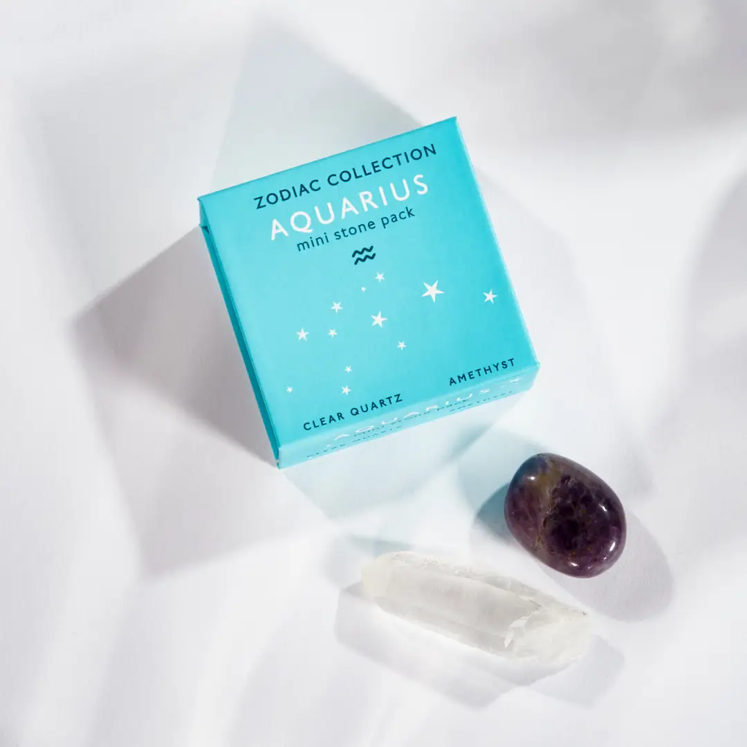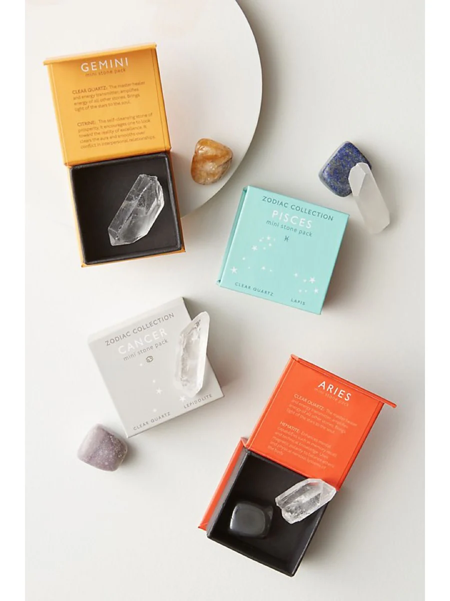 Modern packaging available in all 12 zodiac signs paired with corresponding crystals and colors.